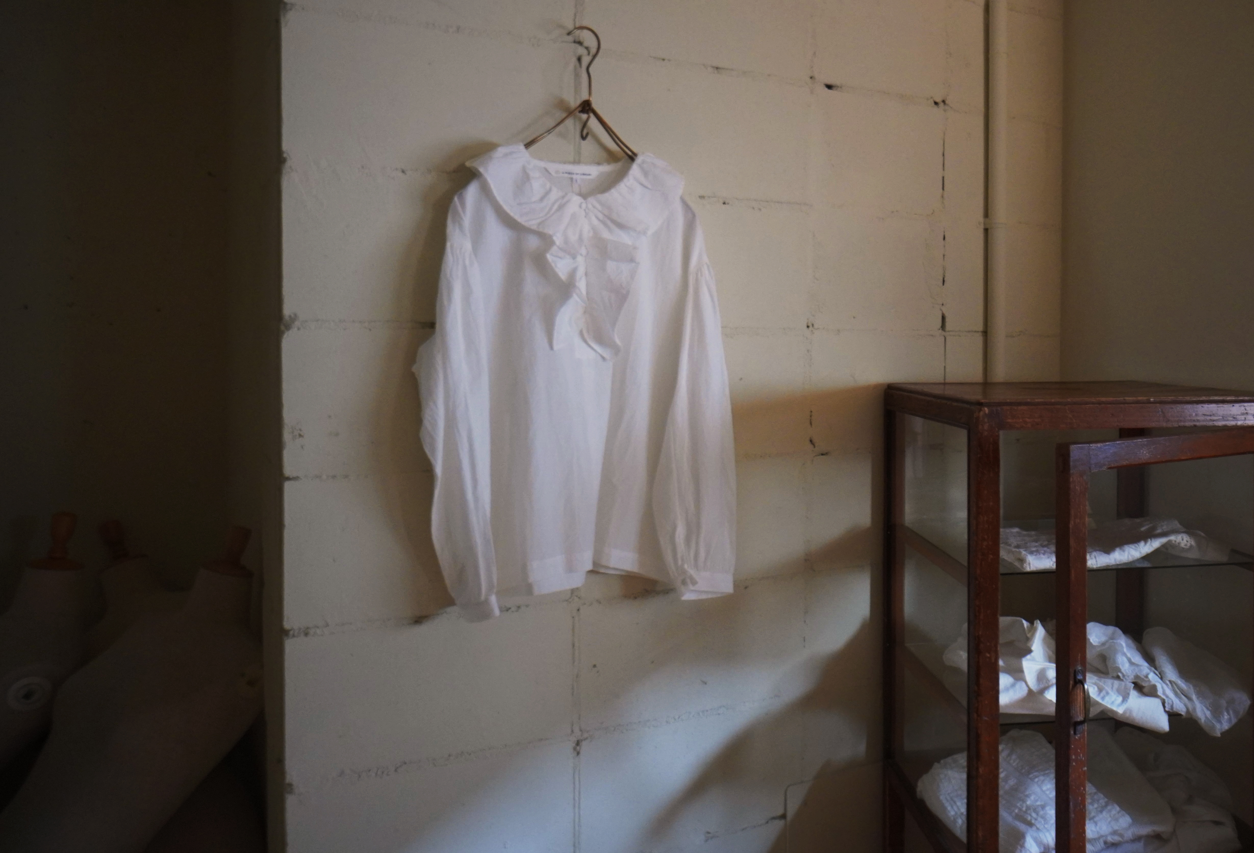 ノスタルジックなニュアンスが漂う、プルオーバーのフリルブラウス。